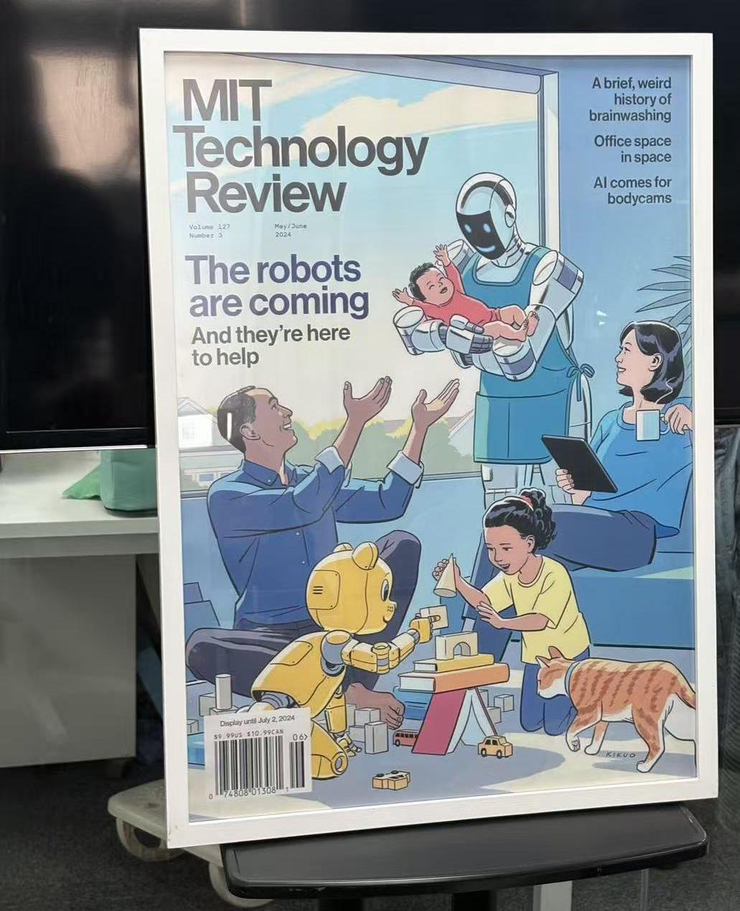 新的公司“麻雀虽小,但五脏俱全”。在不足百十平方米的会议室,有一幅漫画格外显眼,它被放置于房间门口。这幅画畅想了人类未来的生活:机器人可以端茶倒水,可以成为育儿嫂,可以做几乎一切人所需要的服务。