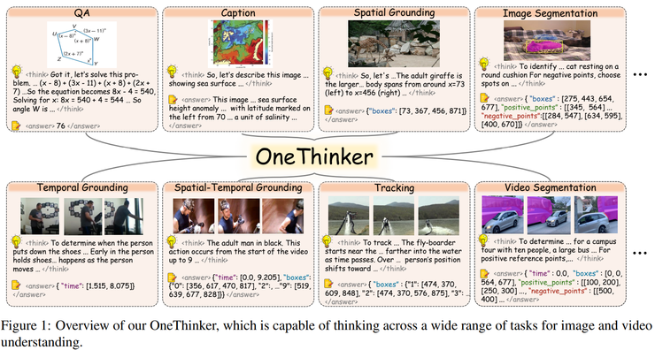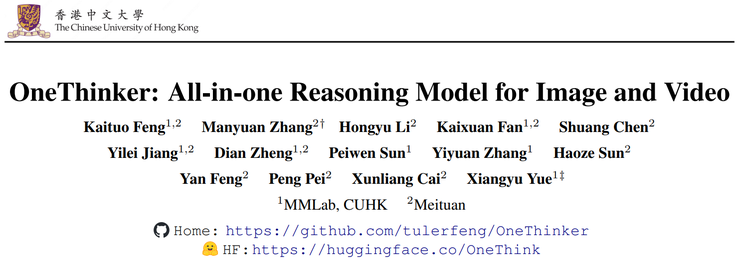 在这样的行业背景下, 香港中文大学多媒体实验室(MMLab)与美团的联合研究团队提出了 OneThinker 多模态统一推理模型,并在论文中系统性地给出了答案。