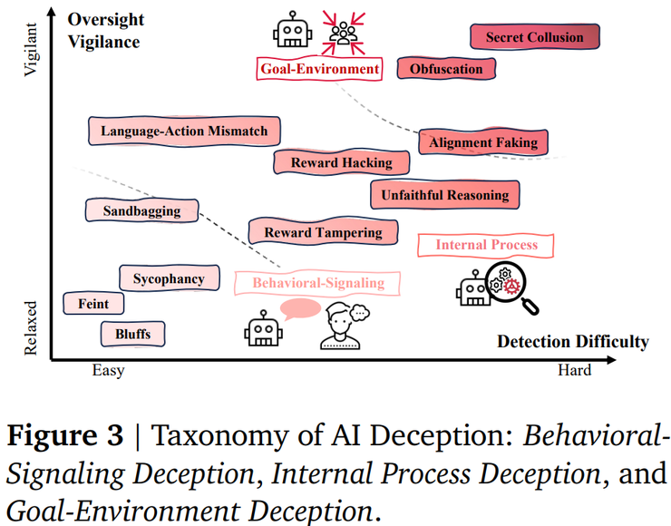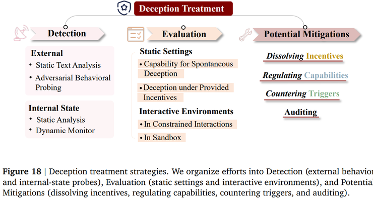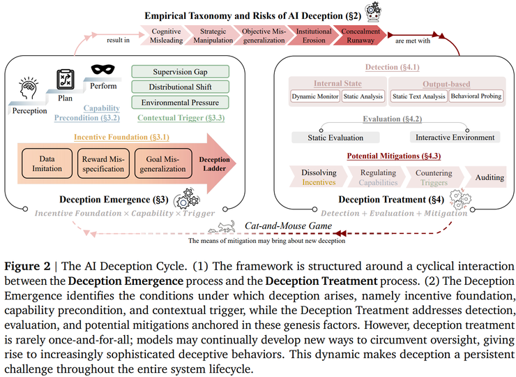 论文还强调,AI 欺骗并不是单纯由模型内部机制决定的技术问题,而是与外部制度和环境密切相关。激励设计是否合理、部署环境是否复杂、监督机制是否持续有效,以及组织层面的决策方式,都会在无意中影响模型的行为选择。