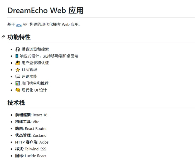 项目需求:使用TypeScript、React、Vite、Zustand开发Web应用,实现播客播放、历史记录、睡眠评分、搜索订阅等功能。