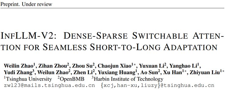 正是在这一背景下,清华大学刘知远团队提出了《InfLLM-V2: Dense-Sparse Switchable Attention for Seamless Short-to-Long Adaptation》。与以往强调“引入新结构”或“增加可训练模块”的路径不同,这项研究将关注点前移至一个更基础的问题:稀疏注意力是否必须以改变模型结构为代价,才能获得长上下文效率?