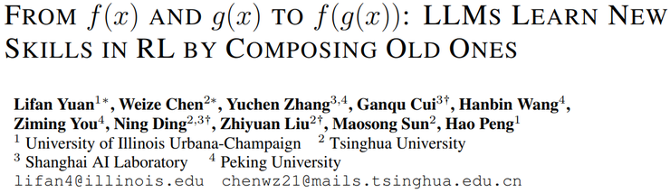 正是在这样的背景下,清华大学的孙茂松、刘知远团队提出了《From f(x) and g(x) to f(g(x)): LLMs Learn New Skills in RL by Composing Old Ones》这项研究。