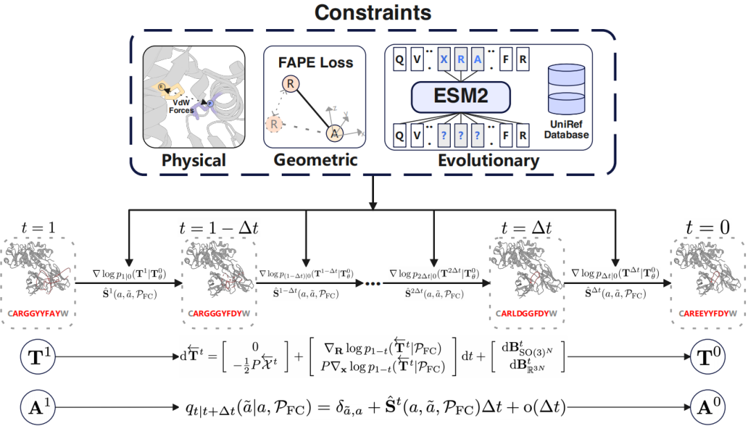 2、Antibody Design Using a Score-based Diffusion Model Guided by Evolutionary, Physical and Geometric Constraints. Tian Zhu, Milong Ren, Haicang Zhang. ICML 2024.