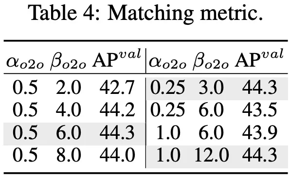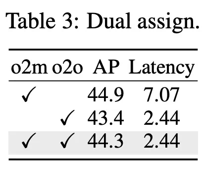 如下表所示,双标签分配实现了最佳的 AP – 延迟权衡,采用一致匹配度量可以达到最优性能。